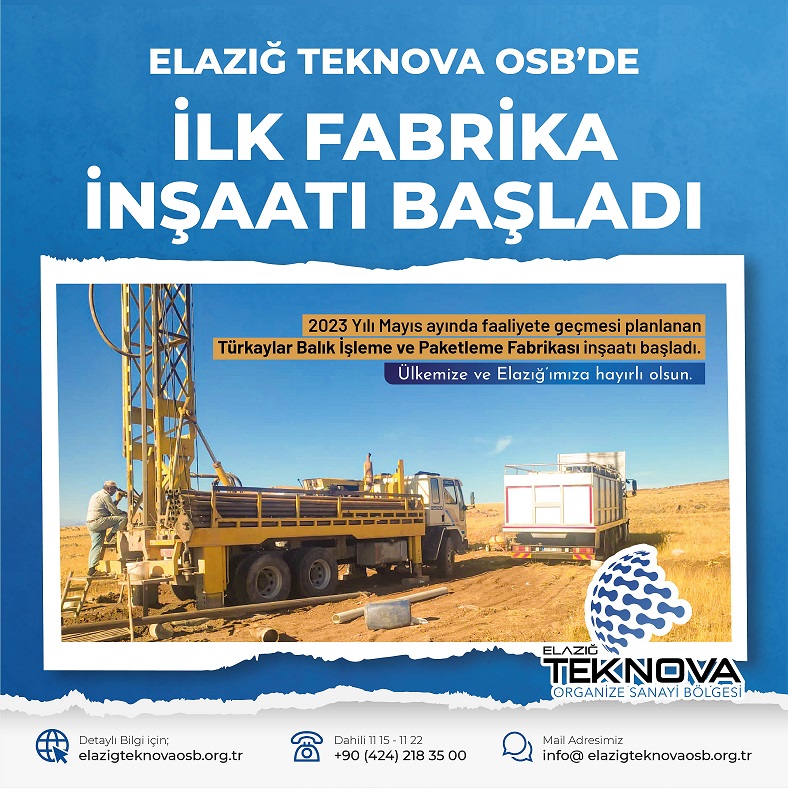23 Eyl Haberler Teknova OSB’de İlk Fabrika İnşaatı Başladı 23.09.2022 Tarafından gönderildi Elazığ Teknova OSB Mart 15, 2026 0 Elazığ Teknova OSB'de Türkaylar Balık İşleme ve Paketleme fabrikasının inşaatı başladı. 2023 yılı mayıs ayında faaliyete geçmesi planla... Okumaya devam et